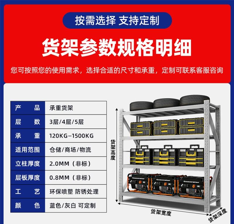 四層中型貨架2000×1200×600